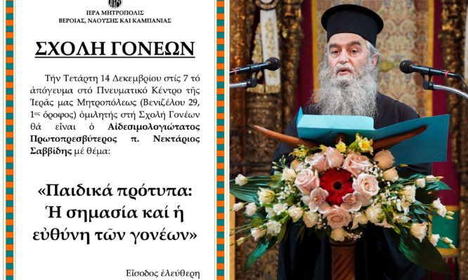 14 Δεκεμβρίου 2022 17:30 Ο Πρωτοπρ. Νεκτάριος Σαββίδης ομιλητής στη Μητρόπολη Βεροίας Ομιλία στη Σχολή Γονεών Βεροίας