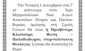 «ΣΧΟΛΗ ΓΟΝΕΩΝ» Βεροίας: Η Πρεσβυτέρα Κλεοπάτρα Φώτη – Παπαθεοδώρου, ομιλήτρια την Τετάρτη 1 Δεκεμβρίου.