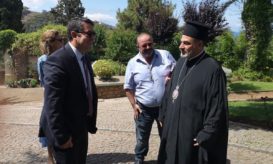Οι Αμερικανοί διπλωμάτες έγιναν δεκτοί από τον Καθηγούμενο, Θεοφιλέστατο Επίσκοπο Αραβισσού κ. Κασσιανό, ο οποίος τους καλωσόρισε στο ιστορικό... -
