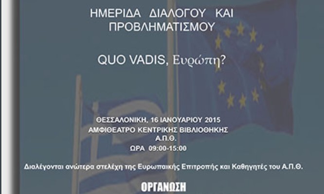 14 Ιανουαρίου 2015 15:59 Ημερίδα διαλόγου και προσβληματισμού για το μέλλον της Ευρώπης O Τομέας Ηθικής και Κοινωνιολογίας του Τμήματος Θεολογίας της Θεολογικής Σχολής του Α.Π.Θ. συνδιοργανώνει με την Αντιπροσωπεία της Εκκλησίας...