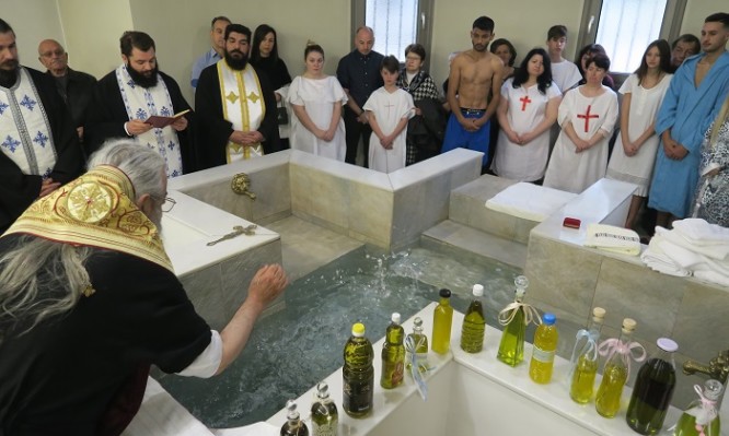 12 Ιανουαρίου 2018 23:03 Βάπτιση νέων κατηχουμένων από τον Φθιώτιδος Νικόλαο Σε κλίμα χαράς και μυσταγωγίας τελέσθηκαν οι Βαπτίσεις δεκαέξι νέων κατηχουμένων ενηλίκων αλλοδαπών αδελφών μας, το πρωί της Πέμπτης...