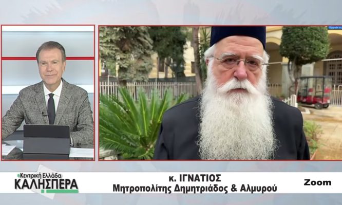 Στην εκπομπή «Κεντρική Ελλάδα Καλησπέρα» της TRT, με τον Σωτήρη Πολύζο, φιλοξενήθηκε μέσω ζωντανής σύνδεσης(zoom) από τη Χάλκη ο Μητροπολίτης Δημητριάδος και Αλμυρού Ιγνάτιος, ο οποίος συμμετείχε στις λατρευτικές εκδηλώσεις στη Μονή Αγίας Τριάδας Χάλκης, με αφορμή την εορτή του Ιερού Φωτίου.