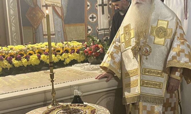 Την Πέμπτη, 30 Οκτωβρίου 2025, επ’ ευκαιρία της πέμπτης επετείου της κοίμησης του μακαριστού Μητροπολίτη Αμφιλοχίου, τελέστηκε η Πολυαρχιερατική Θεία Λειτουργία, προεξάρχοντος του Σεβασμιωτάτου Μητροπολίτου Μαυροβουνίου και Παραθαλασσίας Ιωαννικίου, με τη συλλειτουργία των Σεβασμιωτάτων Μητροπολιτών: Πτολεμαΐδας και Άκρας Μακαρίου από το Πατριαρχείο Ιεροσολύμων, Δημητριάδος και Αλμυρού κ.Ιγνατίου από την Εκκλησία της Ελλάδος, Μιλέσεβου Αθανασίου, Ράσκας-Πριζρένης Θεοδοσίου, Ζαχουμλίας-Ερζεγοβίνης και Στον-Πριμόρσκο Δημητρίου, Μπουντιμλίας-Νίκσιτς Μεθοδίου και των Σεβασμιωτάτων Επισκόπων Πάκρατς-Σλαβονίας Ιωάννη και Διοκλητίας Παϊσίου, πλήθους κληρικών, μοναχών και πιστού λαού.