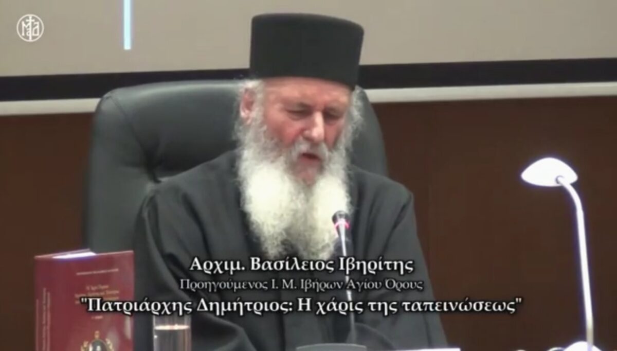 Στο άκουσμα της εκδημίας του Αρχιμ. Βασιλείου Γοντικάκη, Προηγουμένου της Ιεράς Μονής Ιβήρων Αγίου Όρους, ενθυμούμαστε και κοινοποιούμε την ομιλία του, η οποία πραγματοποιήθηκε στις 7/12/2013, στην κεντρική αίθουσα του Συνεδριακού Κέντρου Θεσσαλίας της Ιεράς Μητροπόλεως Δημητριάδος, με αφορμή την εκδήλωση για τη συμπλήρωση 23 ετών από την ευλογητή έλευση του αειμνήστου Πατριάρχου Δημητρίου στο Βόλο (1990) και την έκδοση του τρίτομου, περισπούδαστου έργου του Σεβ. Μητροπολίτου Φιλαδελφείας κ. Μελίτωνος με τίτλο: «Η ιερά πορεία Αγάπης, Ειρήνης και Ενότητος του Οικουμενικού Πατριάρχου Δημητρίου».