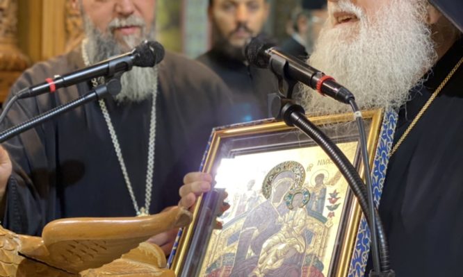 Στο τέλος της ομιλίας ευχαρίστησε το Σεβασμιώτατο Μητροπολίτη μας κ.κ. ΔΑΝΙΗΛ για την πρόσκληση αλλά και την ευλογία που του έδωσε ώστε να παρευρίσκεται μαζί μας καθώς και τον Προϊστάμενο του Ιερού Ναού μας Πανοσιολ. Αρχιμ. π. Χριστόδουλο Κοτσίφη στον οποίο δώρισε αντίγραφο της Ιεράς Εικόνος της Παναγίας της Παντανάσσης, μιας εκ των επτά Θαυματουργών Εικόνων της Ι.Μ.Μονής Βατοπαιδίου.