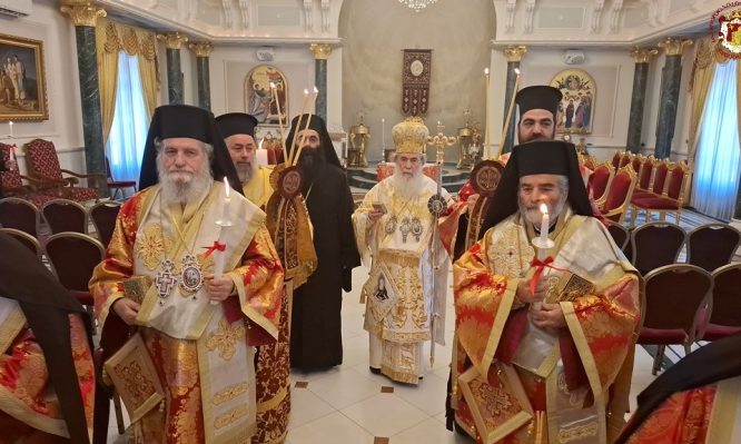 Πρό τῆς Πύλης τοῦ Πανιέρου Ναοῦ τῆς Ἀναστάσεως ἀνεπέμφθη δέησις, μεθ’ ἣν ἠκολούθησεν ἡ εἴσοδος εἰς τὸ Καθολικὸν.