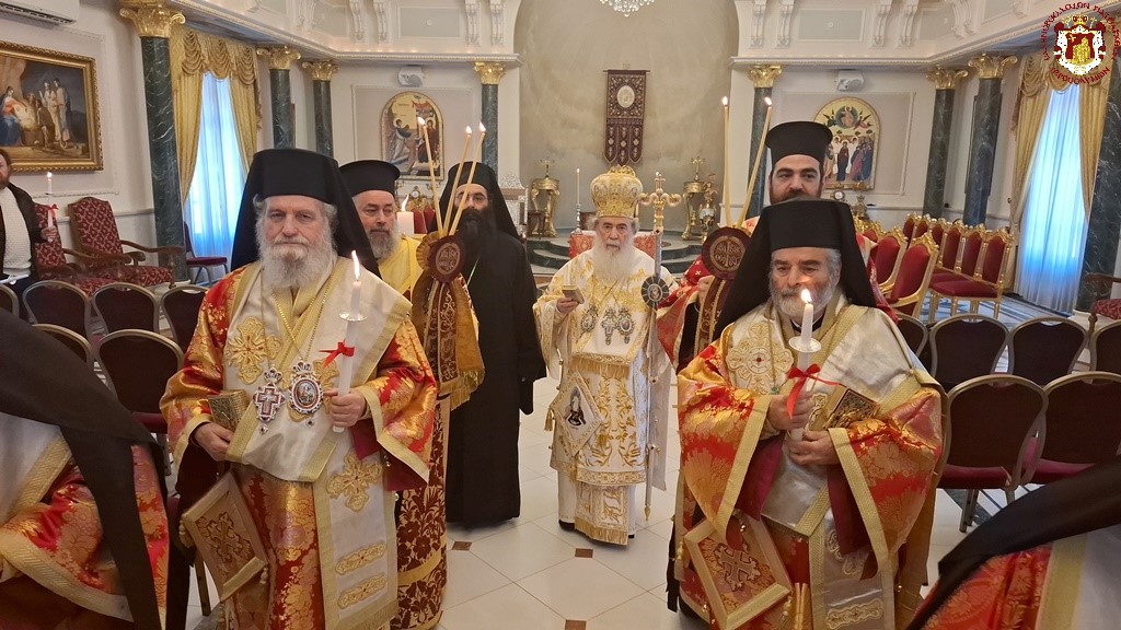 Πρό τῆς Πύλης τοῦ Πανιέρου Ναοῦ τῆς Ἀναστάσεως ἀνεπέμφθη δέησις, μεθ’ ἣν ἠκολούθησεν ἡ εἴσοδος εἰς τὸ Καθολικὸν.