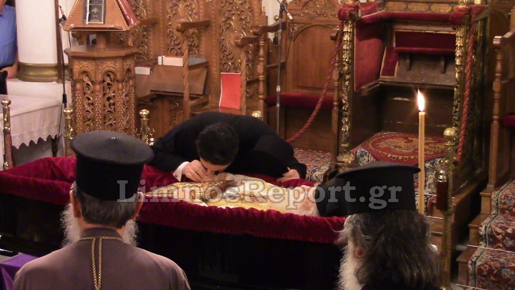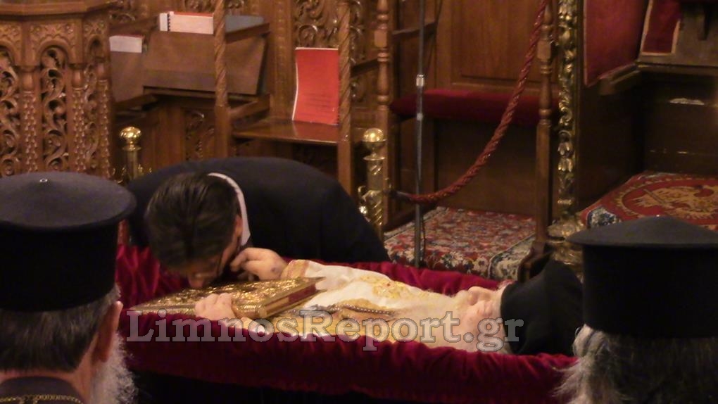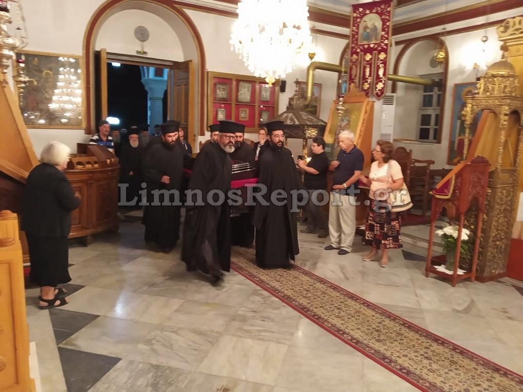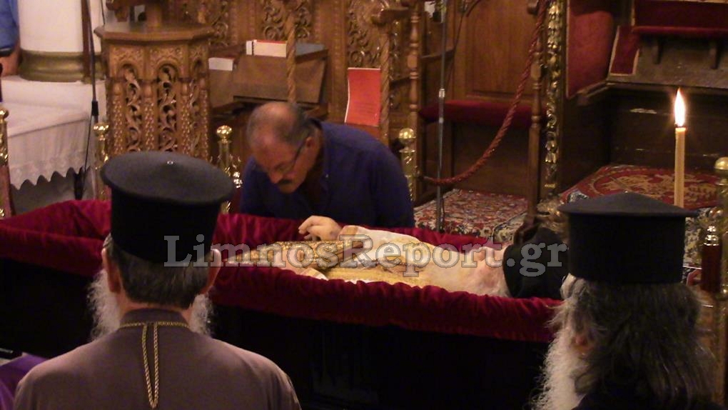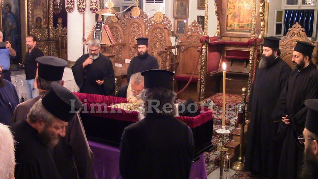 Η σωρός έφθασε λίγο πριν τις 3:00π.μ. στον Μητροπολιτικό Ναό της Αγίας Τριάδος οπού την υποδέχθηκαν ο κλήρος της Λήμνου, αλλά και πιστοί που συγκινημένοι είχαν από νωρίς συγκεντρωθεί για το «ύστατό χαίρε» στον Πνευματικό τους Πατέρα.