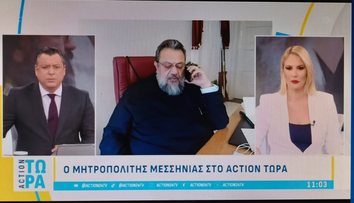 Συνέντευξη στον τηλεοπτικό σταθμό ACTION 24και στην εκπομπή «ACTIONΤΩΡΑ» παραχώρησε σήμερα 05 Φεβρουαρίου 2024, ο Σεβασμιώτατος Μητροπολίτης Μεσσηνίας κ. Χρυσόστομος, με θέμα το υπό ψήφιση νομοσχέδιο για το γάμο των ομοφυλόφιλων ζευγαριών.
