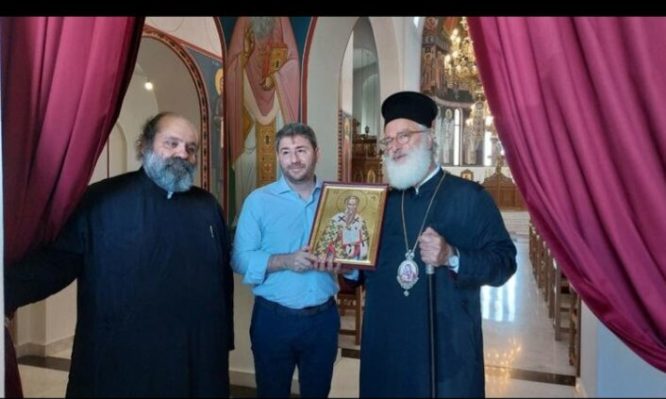 Στο Μητροπολιτικό Ναό Αρκαλοχωρίου προσκύνησε ο Πρόεδρος του ΠΑΣΟΚ-ΚΙΝΑΛ κ. Νίκος Ανδρουλάκης, μετά που ψήφισε σε εκλογικό κέντρο του Αρκαλοχωρίου.