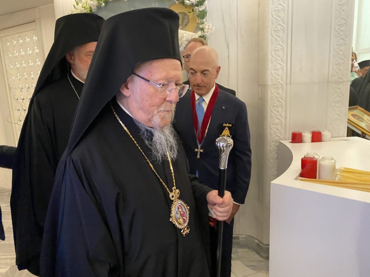 Ο Παναγιώτατος Οικουμενικός Πατριάρχης Βαρθολομαίος φθάνει στον ναό και Εθνικό Προσκύνημα του Αγίου Νικολάου.. (Φωτογραφία: Ευανθία Καρατζά)