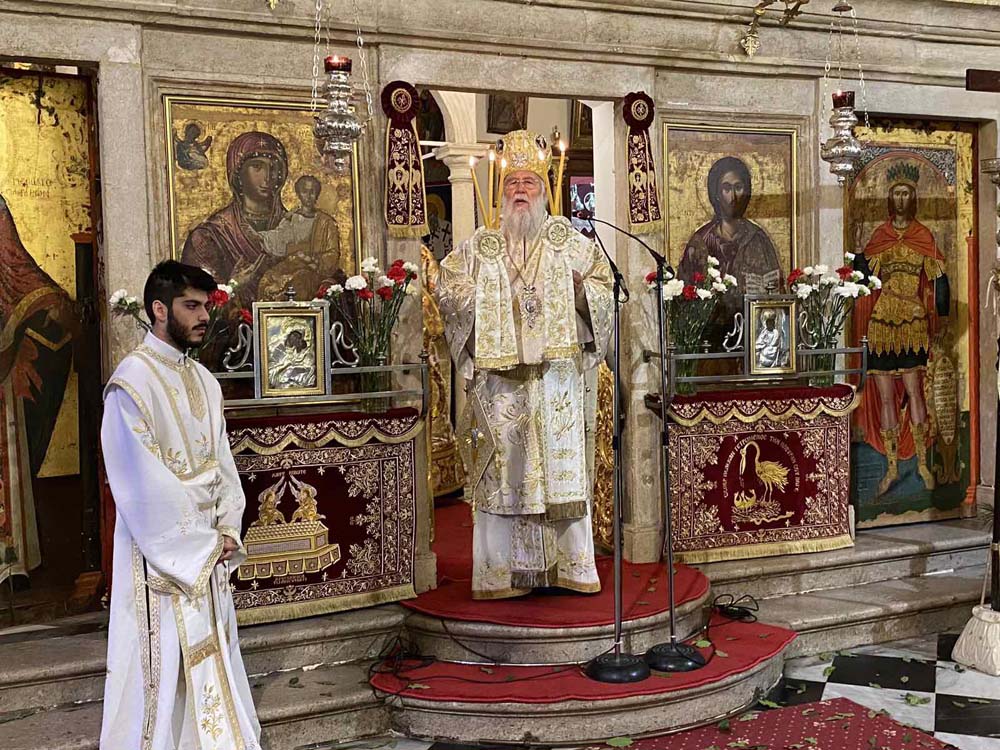 Το απόγευμα της Κυριακής του Πάσχα 16 Απριλίου 2023 τελέστηκε στον Μητροπολιτικό Ναό Υπεραγίας Θεοτόκου Σπηλαιωτίσσης ο εσπερινός της Αγάπης, χοροστατούντος του Σεβασμιωτάτου. Το Ευαγγέλιο αναγνώστηκε σε τέσσερις γλώσσες, λατινικά, ρουμανικά, αγγλικά και ρωσικά, ενώ εψάλησαν και το “Χριστός Ανέστη” και ο πολυχρονισμός του επισκόπου στην ντόπια κερκυραϊκή ψαλτική παράδοση. Προσφωνώντας τους πιστούς ο κ. Νεκτάριος τόνισε ότι η πίστη στην Ανάσταση αποτελεί την ελπίδα του λαού μας, ενός λαού που παραπλανήθηκε από αλλότρια διδάγματα και ιδέες που προέρχονται από την δυτική παράδοση, ο οποίος όμως εξακολουθεί να αναζητά την αλήθεια στις ρίζες της παράδοσής του, καθώς βλέπει να μην λύνονται τα προβλήματά του. Μόνο η πίστη στην Ανάσταση δίνει αληθινό νόημα και σκοπό ζωής στον άνθρωπο και αυτό συνεχίζει να διατρανώνει η Εκκλησία. Ο κ. Νεκτάριος μοίρασε πασχαλινές ευλογίες στους πιστούς.