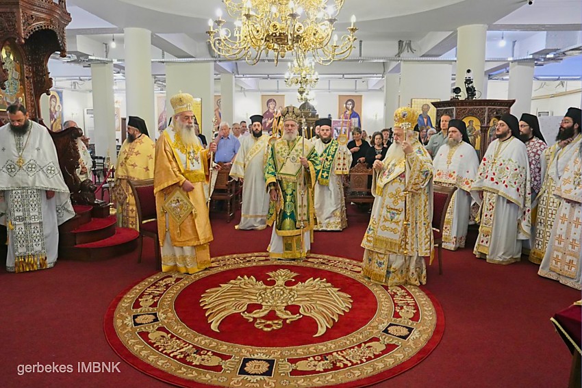 Χοροστάτησε στον Όρθρο, προεξήρχε στη Θεία Λειτουργία και κήρυξε τον θείο λόγο ο Σεβασμιώτατος Μητροπολίτης Σύρου κ. Δωρόθεος και συμμετείχαν ο Σεβασμιώτατος Μητροπολίτης Μαντινείας κ. Επιφάνιος και ο Ποιμενάρχης μας, Σεβασμιώτατος Μητροπολίτης Βεροίας, Ναούσης και Καμπανίας κ. Παντελεήμων.