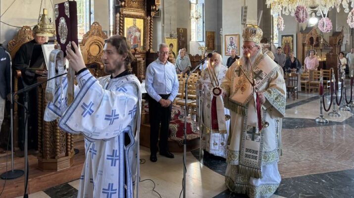 Στον Ιερό Ναό Αγίων Θεοστέπτων Βασιλέων και Ισαποστόλων Κωνσταντίνου και Ελένης Συκουρίου, χοροστάτησε στην ακολουθία του Όρθρου και τέλεσε την Θεία Λειτουργία ο Σεβ. Μητροπολίτης Λαρίσης και Τυρνάβου κ. Ιερώνυμος. Το Συκούριο, η γραφική κωμόπολη του Κισσάβου, αποτελούσε στο παρελθόν έδρα δήμου, ενώ τώρα χαρακτηρίζεται κι αυτή από πληθυσμιακή απομείωση. Είναι δε στο επίκεντρο της προσοχής αυτές τις ημέρες, λόγω των δικαίων κινητοποιήσεων των αμυγδαλοπαραγωγών.