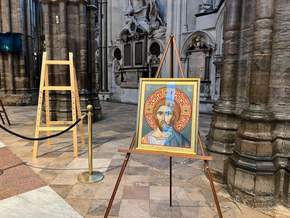 Σημαντική ήταν η συμβολή της Ιεράς Αρχιεπισκοπής στην τελετή, με την προσφορά δύο ιερών εικόνων στο Αββαείο. Η μία εξ αυτών, η εικόνα του Χριστού, τοποθετήθηκε σε περίοπτη θέση στον κυρίως ναό. Σε μια ιδιαίτερη στιγμή κατά τους χαιρετισμούς που ακολούθησαν, ο Σεβασμιώτατος ενημέρωσε την Αυτού Μεγαλειότητα, τον Βασιλιά Κάρολο, πως η συγκεκριμένη εικόνα προσφέρεται ως δώρο της Αρχιεπισκοπής προς το πρόσωπό του, «για να τον προστατεύει». Ο Βασιλιάς αποδέχθηκε την ευγενική αυτή χειρονομία εκφράζοντας ευγνωμοσύνη και ευχαριστίες.